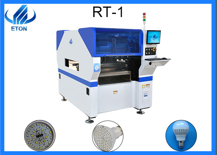 2. من مظهر RT-1 ، إنها آلة متوسطة الحجم باللون الأبيض والأزرق.لا يزيد العرض الإجمالي لهذه الوحدة عن مترين ، وشاشة LED تعمل باللمس ، خاصة ، برنامجنا هو R&D بواسطة مهندسنا ، وبعد ذلك ، سكة التوجيه الرئيسية لـ RT-1 هي محرك خطي مغناطيسي متطور ومحرك مؤازر .عادةً ما تستخدم الآلات العادية محركًا مؤازرًا بشكل أساسي ، ويمكن لـ RT-1 باستخدام محرك خطي تحسين وظيفة الماكينة.يتمتع RT-1 بسرعة أعلى ودقة أعلى من الآلات المتوسطة الأخرى ، فهو يحتوي على 10 رؤوس ، يتم التحكم في كل رأس بشكل مستقل عن طريق محرك سيرفو ، مما يضمن دقة وضع الماكينة ، وسيقوم رأس التثبيت بتركيب المكونات من محطة التغذية ثم تركيبها على مجلس ثنائي الفينيل متعدد الكلور.
